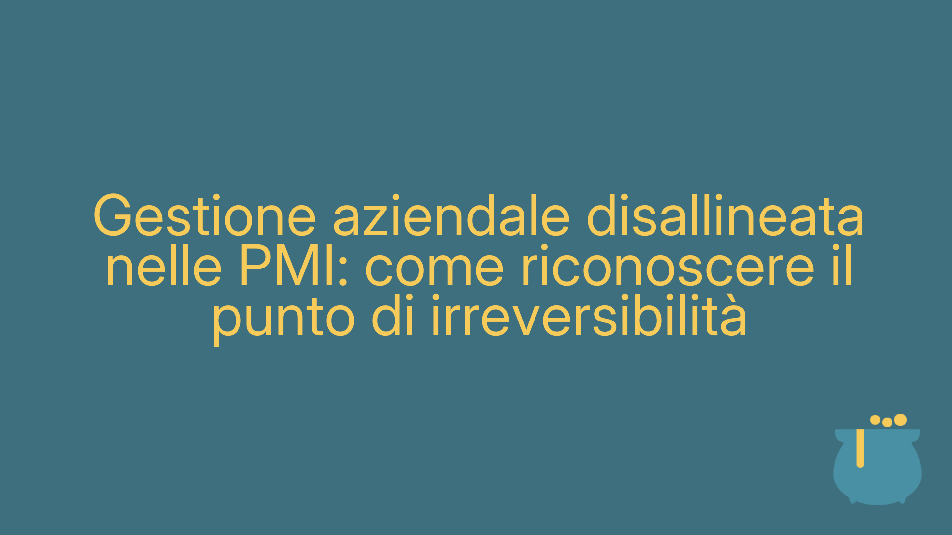 È un luogo comune credere che la gestione aziendale disallineata nelle PMI sia un problema facilmente risolvibile con alcune modifiche organizzative o interventi tattici. In realtà, il disallineamento può configurarsi come un processo sistemico profondo, la cui riparazione non è sempre possibile se non individuato e gestito tempestivamente.